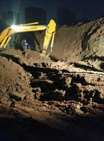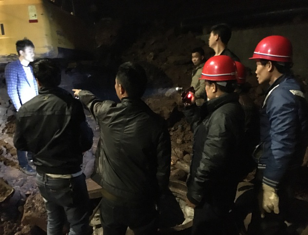 3月22日深夜11點,當(dāng)營銷部完成斷水作業(yè)后,施工現(xiàn)場開始有條不紊地忙碌起來了。此時雨也大了起來,氣溫也較低,雨水順著我們的安全帽沿往下淌,但卻絲毫沒有降低大家的熱情和專注度。施工作業(yè)現(xiàn)場處于滑坡地段,雖白天做了防護措施,但夜間的陰雨卻增大了危險系數(shù),施工現(xiàn)場管理人員一刻也沒有松懈地觀察和留意施工周邊環(huán)境的變化,利用經(jīng)驗和責(zé)任心保護著大家的安全,讓大家能專心地完成施工作業(yè)。